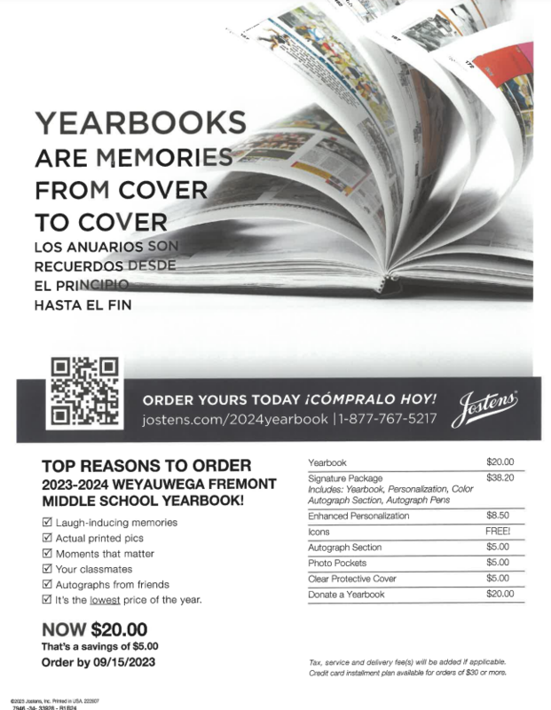 Final Day to order Yearbook for $20 – Price increase after TODAY