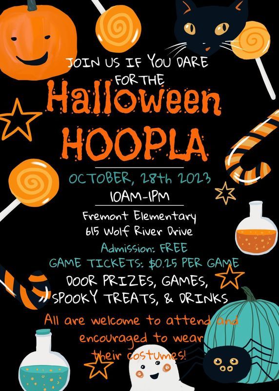 The Halloween Hoopla is coming up at the end of October! See flyer below for event information. We are accepting candy donations, all donations can be dropped off at the Fremont Elementary/STEM Academy school office.