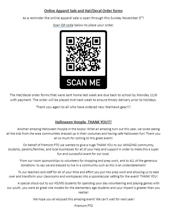 - There is still time to order your yearbook, they are $15! Go to jostens.com/2024yearbook and type in your child's school- Fremont Elementary! If you would like a paper form, please have your child stop by the office and grab a paper form and return ASAP!